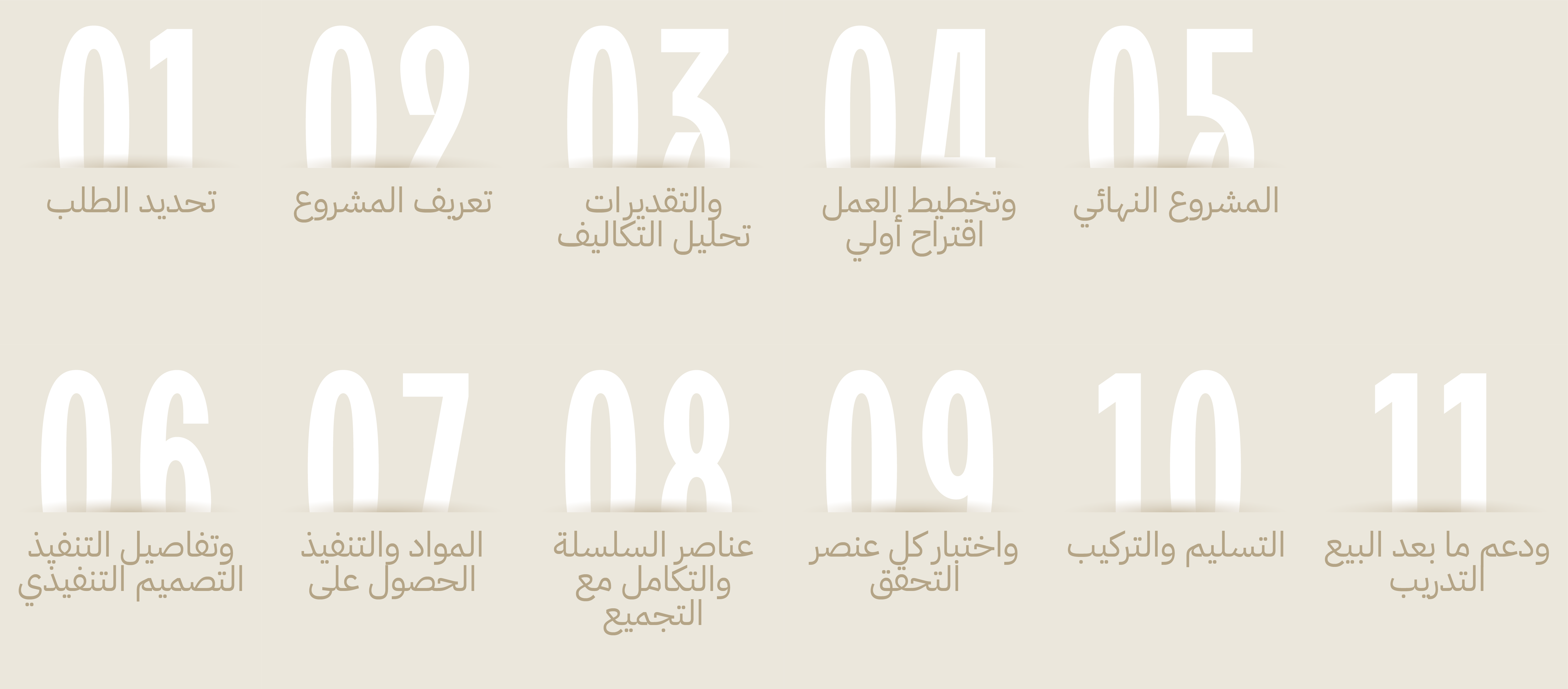 إن فكرة إنشاء مشروع فريد من نوعه، دقيق وخالي من العيوب في التفاصيل، وفوق كل شيء، غير نمطي، هو ما يميز كل عمل من أعمالنا ويجعلنا نتفوق في عالم المقاولات. وضع منهجية العمل لدينا ومهارة الحرفيين في بؤرة الاهتمام، حيث تقوم الأيدي الماهرة بتصميم وتقطيع وتجميع وإنشاء أعمال تصميمية فريدة تتميز بمهارة وشغف كبير. لدينا القدرة على دعم العميل في كافة مراحل المشروع بفضل فريقنا المتنوع من المحترفين.