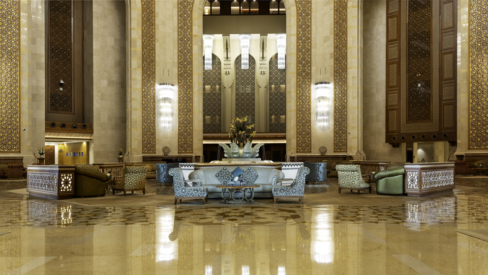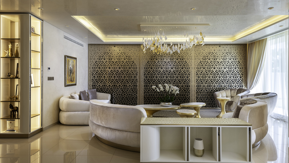 أراد العميل والمهندس المعماري مزيج من التصميم الإسلامي مصورًا بأسلوب معاصر باستخدام مواد وتشطيبات حديثة وصنعة عالية الجودة.