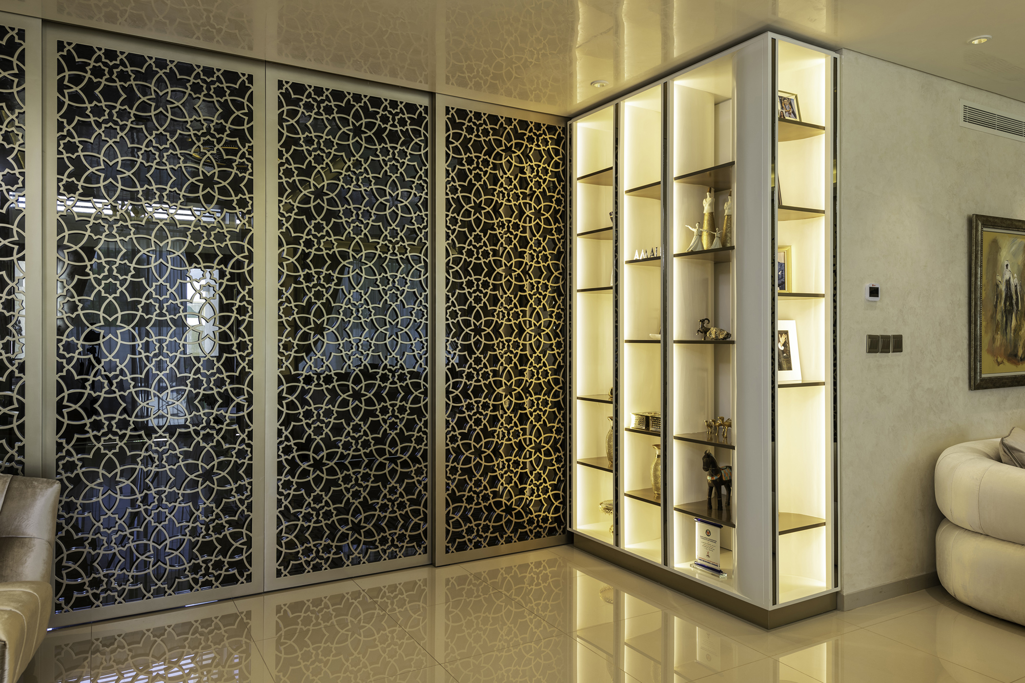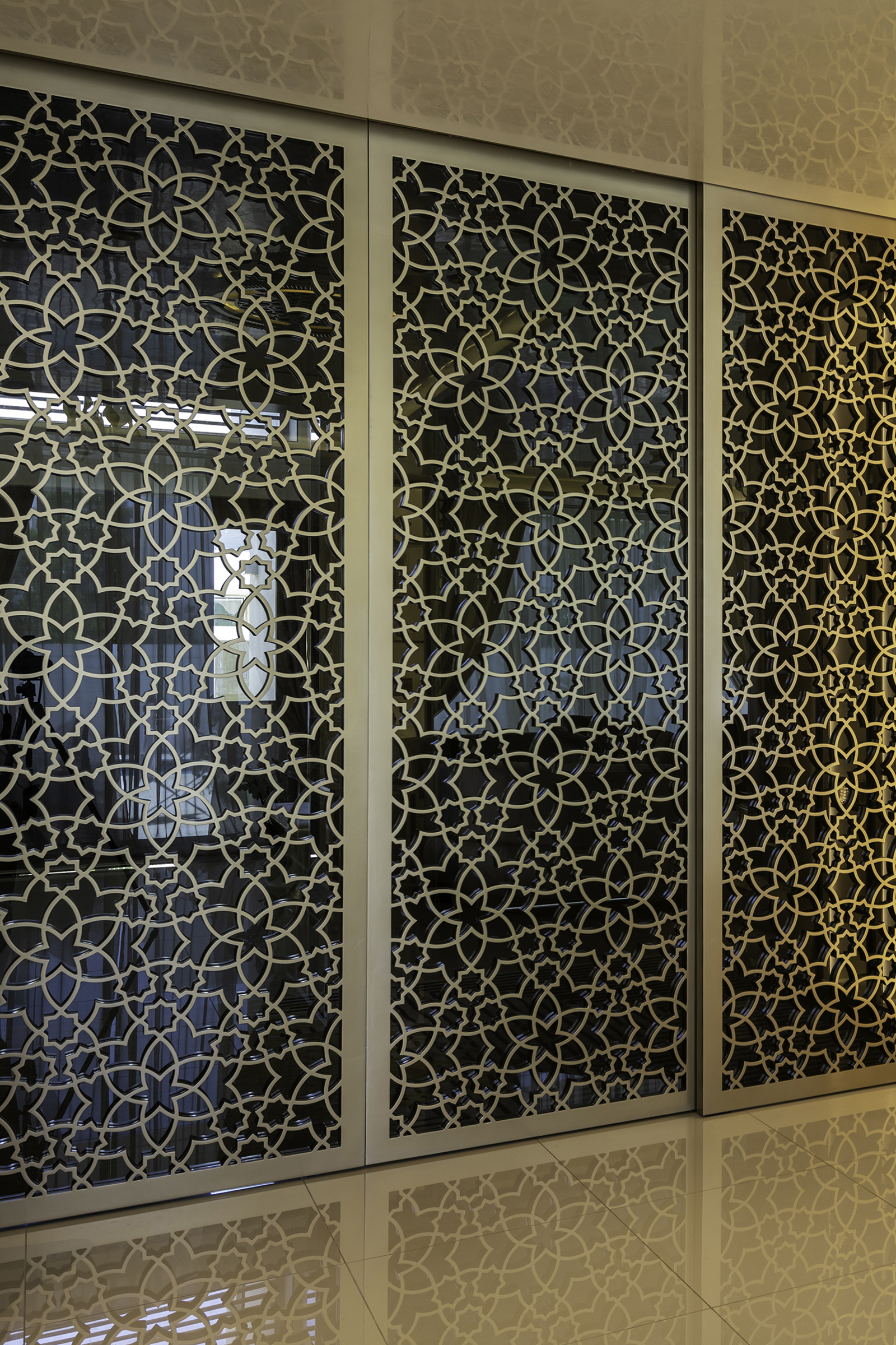 أراد العميل والمهندس المعماري مزيج من التصميم الإسلامي مصورًا بأسلوب معاصر باستخدام مواد وتشطيبات حديثة وصنعة عالية الجودة.