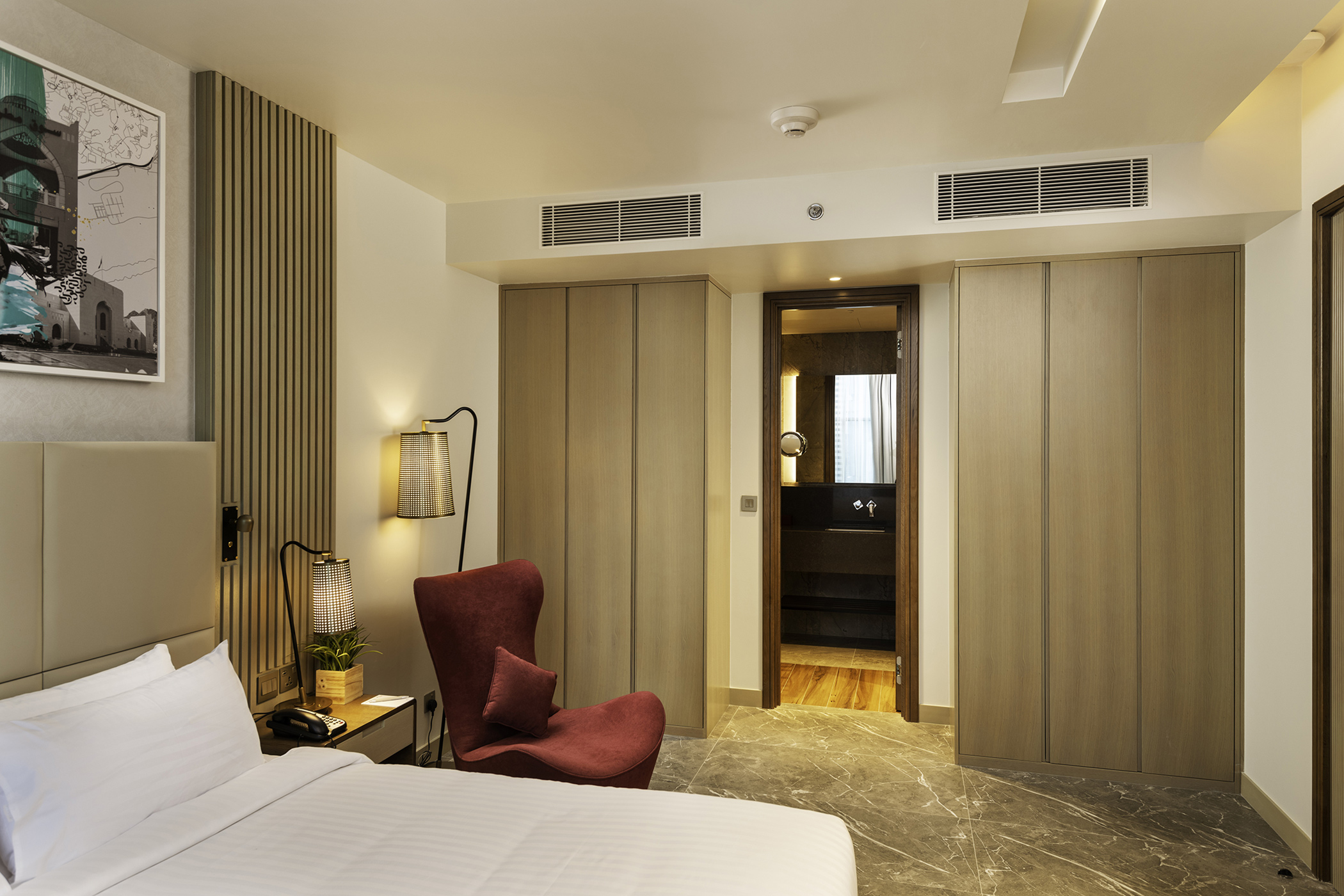 Keyword: versatility. This concept defines the luxury woodworking services at Intercity Hotel, overseen by Shanfari Furnishing.